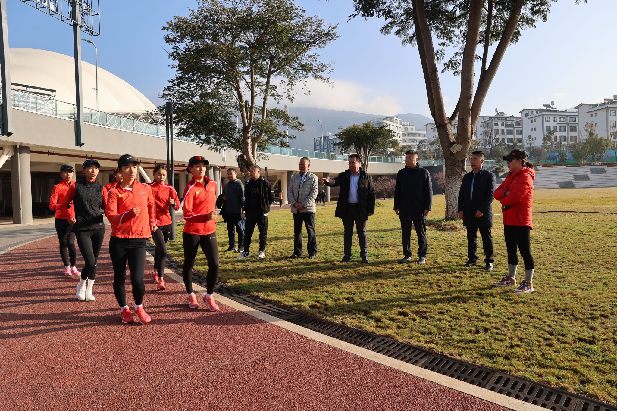 在玉溪训练基地,李富生一行观看了竞走队员的训练情况,听取了中国竞走学校教练蒋秋艳关于此次外训计划、队员身体状态和阶段性训练成果的汇报。李炎东代表运动员作了表态发言,表示将秉承团结、拼搏、进取的精神,以更加饱满的热情投入到训练中,不断提升技术水平,为即将到来的世锦赛及十五运做好充分准备,为陕西争光,为西体添彩。李富生对竞走队全体教练员、运动员、保障人员放弃节假日、远离家乡亲人外出训练的精神和当前取得的训练成绩表示肯定。他指出,冬训是提升体能、磨练意志的关键时期,此时的辛勤付出将为未来争金夺银打下坚实的基础。希望大家进一步科学训练,最大限度地发挥运动员的潜能,减少不必要的运动损伤;从严管理,培养运动员良好作风,保障训练有序进行,锻造一支能打胜仗的“竞走铁军”,为中国竞走事业争光添彩。